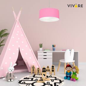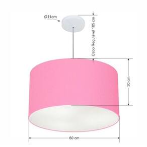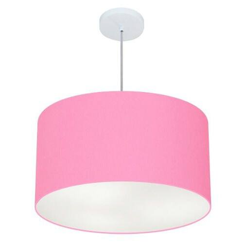 Lustre Pendente Cilíndrico Vivare Md-4101 Cúpula em Tecido 60x30cm - Bivolt - Cor: Rosa-bebê | Voltagem: 127/220V
