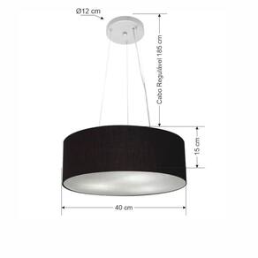 Lustre Pendente Cilíndrico Vivare Md-4181 Cúpula Em Tecido 40x15cm - Bivolt Preto 127/220v