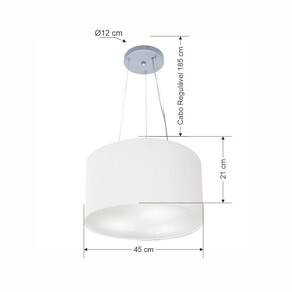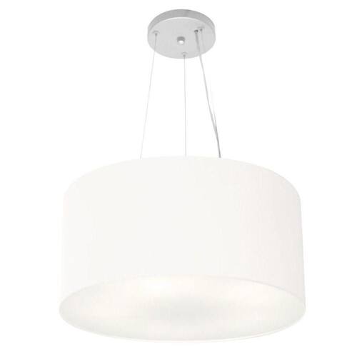 Lustre Pendente Cilíndrico Vivare Md-4185 Cúpula Em Tecido 45x21cm - Bivolt Branco 127/220v