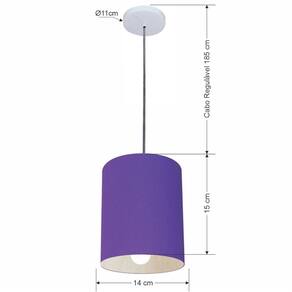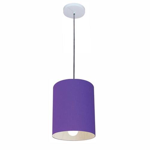 Lustre Pendente Cilíndrico Vivare Md-4200 Cúpula em Tecido 14x15cm - Bivolt - Cor: Roxo | Voltagem: 127/220V