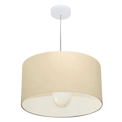 Lustre Pendente Cilíndrico Vivare Md-4205 Cúpula em Tecido 45x30cm - Bivolt - Cor: Algodão-Crú | Voltagem: 127/220V