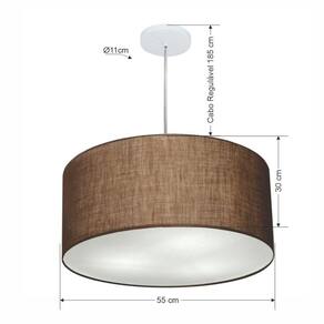Lustre Pendente Cilíndrico Md-4215 Cúpula Tecido 55x30cm