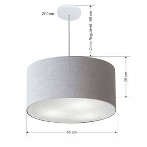 Lustre Pendente Cilíndrico Vivare Md-4242 Cúpula em Tecido 45x25cm - Bivolt - Cor: Rustico-cinza | Voltagem: 127/220V