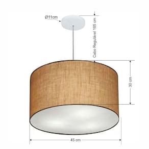 Lustre Pendente Cilíndrico Vivare Md-4257 Cúpula Tecido 45x30cm