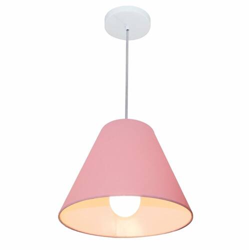 Lustre Pendente Cone Md-4028 Cúpula Tecido 25/30x12cm Rosa Bebê