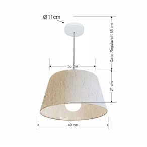 Lustre Pendente Cone Md-4039 Cúpula Tecido 21/40x30cm Linho Bege