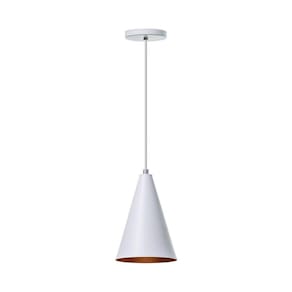 Especificações Técnicas: Marca: Ideallume Modelo: Cone Produto: Pendente Tamanho: P Cor: Branco Dimensões: 18 x 12,5 cm Canopla: redonda de 11cm de diâmetro Material: Alumínio Fio: Ajustável de 150cm Soquete: E-27 utilize a lâmpada que desejar Garantia: Garantia de 6 meses contra defeitos de fabricação