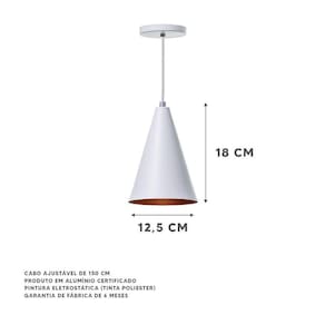 Deixe sua casa muito mais moderna e sofisticada com o Lustre Pendente Cone Da Ideallume. Produzido em alumínio, o produto não enferruja. O Lustre é ideal para ser utilizado em áreas externas e internas. Com esse produto você dará um toque de beleza que valoriza sua casa. Especificações Técnicas: Marca: Ideallume Modelo: Cone Produto: Pendente Tamanho: P Cor: Branco Dimensões: 18 x 12,5 cm Canopla: redonda de 11cm de diâmetro Material: Alumínio Fio: Ajustável de 150cm Soquete: E-27 utilize a lâmpada que desejar Garantia: Garantia de 6 meses contra defeitos de fabricação Quantidade: 2 Lustres/Pendentes IMPORTANTE: Lâmpadas não inclusas neste produto. Conteúdo Da Embalagem: 2x Lustre Pendente Cone P Branco Alumínio Decoração
