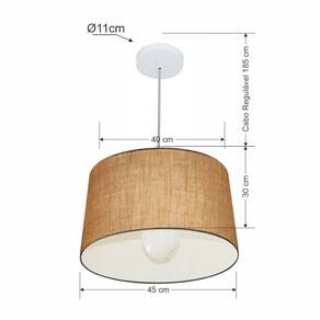 Lustre Pendente Cone Vivare Md-4241 Cúpula Tecido 30/45x40cm