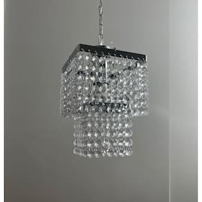 Lustre pendente cristal acrílico alto brilho para decoração sala/quarto Lustre pendente com base quadrada cromada - 2 camadas Ilumine e valorize seu ambiente com elegância este lustre é ideal para quem busca design moderno, acabamento sofisticado e cristais de alto brilho.