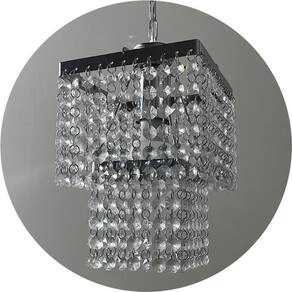 Lustre pendente cristal acrílico alto brilho para decoração sala/quarto Lustre pendente com base quadrada cromada - 2 camadas Ilumine e valorize seu ambiente com elegância este lustre é ideal para quem busca design moderno, acabamento sofisticado e cristais de alto brilho.