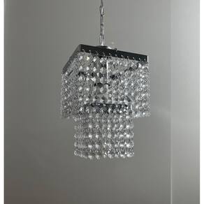especificações técnicas: Base: quadrada em metal cromado com 2 camadas Altura total: 27 cm + 25 cm de corrente ajustável = até 52 cm pode ser instalado diretamente no teto, sem a corrente Castanha: modelo 804 - cristal acrílico de alto brilho 14 mm Lâmpada: 1x soquete e-27 bivolt - compatível com led, comum ou econômica Peso aproximado: 1,0 kg Voltagem: bivolt 110v ou 220v Instalação: produto enviado montado e pronto para instalar