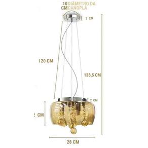 Nome do Produto: Lustre Pendente de Cristal Bacia 28cm Âmbar Luxo e Elegância