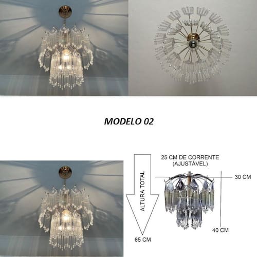 Lustre pendente de cristal e vidro - ideal para sala e quarto Transforme seu ambiente com elegância e sofisticação este lustre pendente combina acabamento premium com brilho marcante, perfeito para salas de jantar, quartos e ambientes modernos. Especificações do produto: Base: redonda com dois andares - 30 cm de diâmetro Cor da base: dourada temos também na cor prata/cromado - após a compra, solicite por mensagem Altura do lustre: 40 cm + 25 cm de corrente ajustável Altura do pingente de vidro: 15 cm Comprimento da base superior: 23 cm Lâmpadas: 1 soquete e-27 em porcelana compatível com lâmpadas comuns e led Voltagem: bivolt 110v/220v Fiação: anti-chama, conforme normas do inmetro Material: estrutura metálica + pingentes de vidro real Importante Lâmpadas não inclusas Pagamento 100% seguro Ficou com alguma dúvida Fale com a gente pelo campo de perguntas e respostas respondemos rápido e com total atenção. Marca: Não Informado Ean: 7795376236780