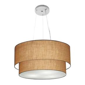 Lustre Pendente Duplo Cilíndrico Vivare Md-4061 Cúpula Em Tecido 50x40cm - Bivolt Palha 127/220v