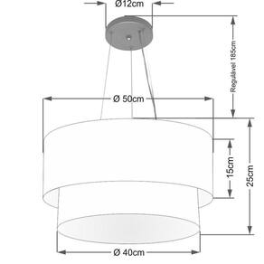 Lustre Pendente Duplo Cilíndrico Vivare Md-4061 Cúpula em Tecido 50x40cm