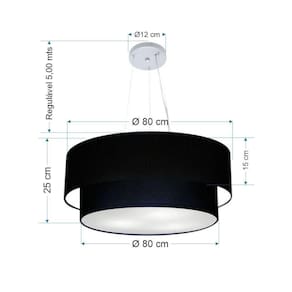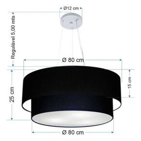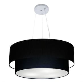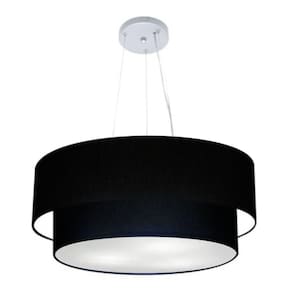 Lustre Pendente Duplo Cilíndrico Vivare Md-4073 Cúpula Em Tecido 80x60cm - Bivolt Preto 127/220v