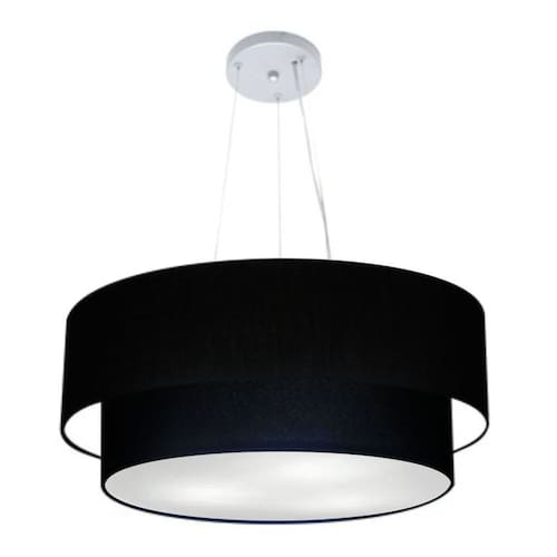 Lustre Pendente Duplo Cilíndrico Vivare Md-4073 Cúpula em Tecido 80x60cm - Bivolt - Cor: Preto | Voltagem: 127/220V
