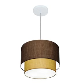 Lustre Pendente Duplo Cilíndrico Vivare Md-4161 Cúpula em Tecido 30x25cm - Bivolt - Cor: Café-palha | Voltagem: 127/220V