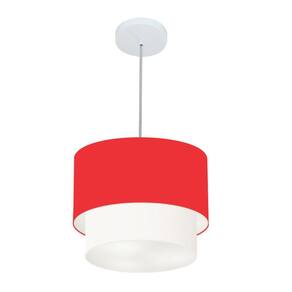 Lustre Pendente Duplo Cilíndrico Vivare Md-4161 Cúpula em Tecido 30x25cm - Bivolt - Cor: Vermelho-branco | Voltagem: 127/220V