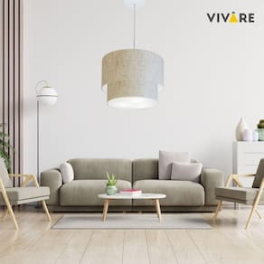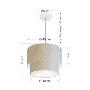 Lustre Pendente Duplo Cilíndrico Vivare Md-4350 Cúpula em Tecido 45x40cm