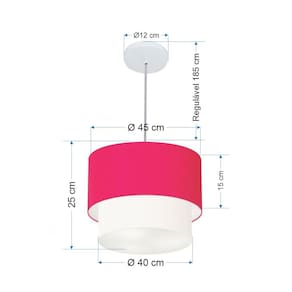 Lustre Pendente Duplo Cilíndrico Vivare Md-4354 Cúpula Tecido 45x40cm - Bivolt - Cor: Rosa-Pink-Branco | Voltagem: 127/220V