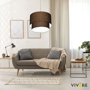 Lustre Pendente Duplo Cilíndrico Vivare Md-4355 Cúpula em Tecido 50x40cm - Bivolt - Cor: Café | Voltagem: 127/220V