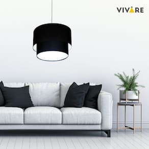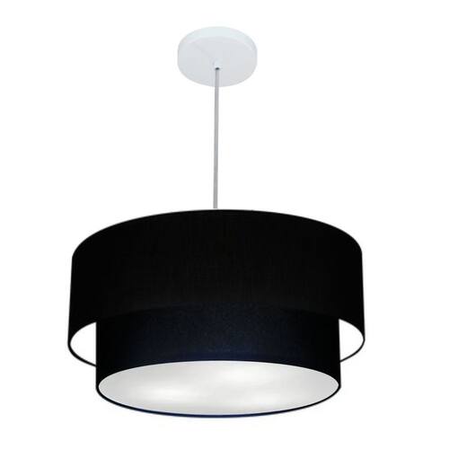 Lustre Pendente Duplo Cilíndrico Vivare Md-4355 Cúpula em Tecido 50x40cm - Bivolt - Cor: Preto | Voltagem: 127/220V