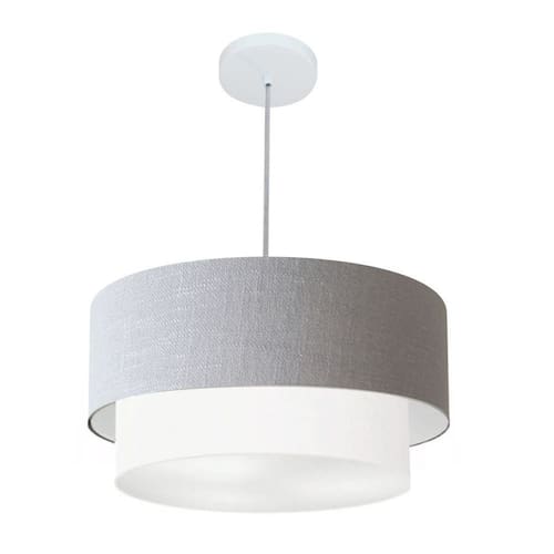 Lustre Pendente Duplo Cilíndrico Vivare Md-4355 Cúpula Tecido 50x40cm - Bivolt - Cor: Rustico-cinza-branco | Voltagem: 127/220V