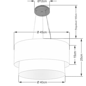 Lustre Pendente Duplo Cilíndrico Vivare Md-4369 Cúpula em Tecido 45x40cm