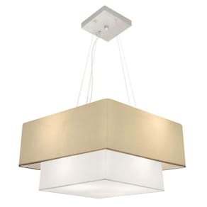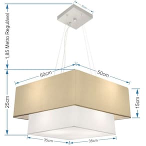 Lustre Pendente Duplo Quadrado Vivare Md-4066 Cúpula em Tecido 50x35cm Algodão Crú / Branco