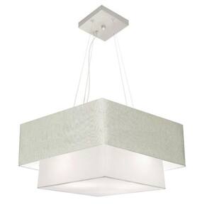 Lustre Pendente Duplo Quadrado Vivare Md-4066 Cúpula em Tecido 50x35cm Rustico Cinza / Branco
