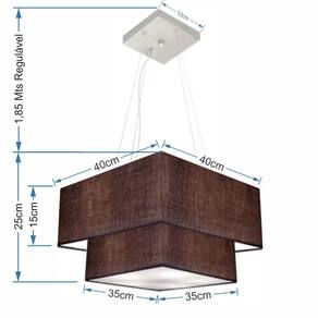 Lustre Pendente Duplo Quadrado Vivare Md-4157 Cúpula em Tecido 40x35cm