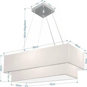 Você já deve ter reparado que os pendente retangular duplo são luminária suspensa que oferecem um charme único aos espaços e estão cada vez mais presentes na decoração. Utilizamos em nossa casa em uma mesa de jantar e só escolha a cor da cúpula em tecido que mais combine com seu ambientes.