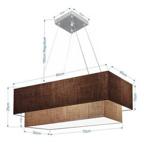 Lustre Pendente Duplo Retangular Vivare Md-4321 Cúpula em Tecido 80x40cm x 70x30cm - Bivolt