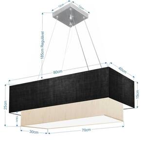 Lustre Pendente Duplo Retangular Vivare Md-4321 Cúpula em Tecido 80x40cm x 70x30cm - Bivolt - Cor: Preto-linho-bege | Voltagem: 127/220V