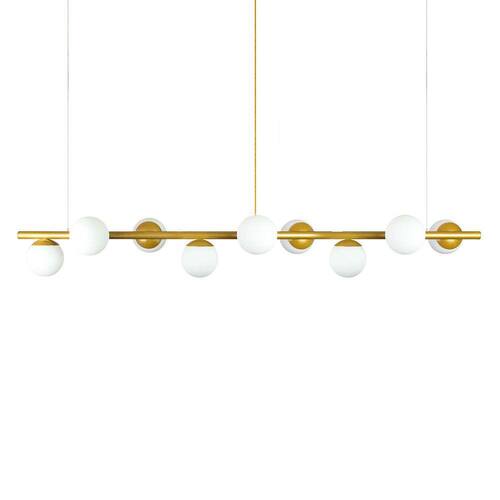 Lustre Pendente Figo Ouro 1,5M - 9 Globos de Vidro Branco