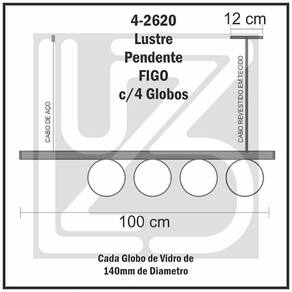 Com Design simples trazem classe e estilo a qualquer ambiente. Todos luminárias da linha são produzidas em alumínio com esferas de vidro branco mate. Descrição Técnica: - Modelo: Lustre Pendente com 4 Globos de Vidro - Acabamento: Pintura a pó térmica - Tamanho dos Globos de Vidro: 140mm - Quantidade de Globos de Vidro e soquetes: 4 - Material: Globo em Vidro e Hastes em Alumínio - Tamanho Aproximado (LxAxP) com os Globos de Vidro: 100 cm X 17 cm X 27 cm - Cabo: Cabo Revestido em Tecido - 70cm - Soquete: Padrão G9 - Bivolt: Sim ****