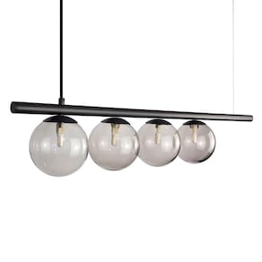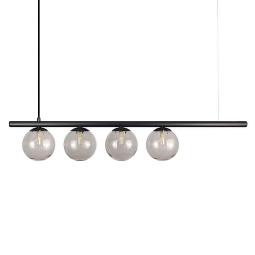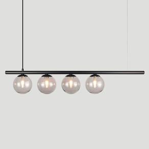 Com Design simples trazem classe e estilo a qualquer ambiente. Todos luminárias da linha são produzidas em alumínio com esferas de vidro. Descrição Técnica: - Modelo: Lustre Pendente com 4 Globos de Vidro - Acabamento- Tamanho dos Globos de Vidro: 140mm - Quantidade de Globos de Vidro e soquetes: 4 - Material: Globo em Vidro e Hastes em Alumínio - Tamanho Aproximado (LxAxP) com os Globos de Vidro: 100 cm X 17 cm X 27 cm - Cabo: Cabo Revestido em Tecido - 70cm - Soquete: Padrão G9 - Bivolt: Sim