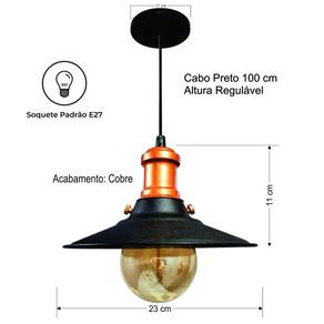 Lustre Pendente Industrial Moderno Nordic Preto Com Cobre
