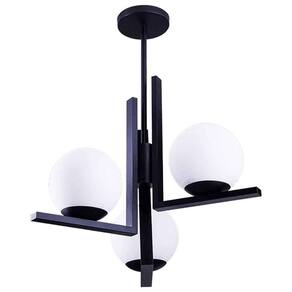 Lustre Pendente Industrial Com Vidro Leitoso Havana 03 Lâmpadas E27 Cores: Preto Lustre Pendente Industrial Com Vidro Leitoso Havana 03 Lâmpadas E27