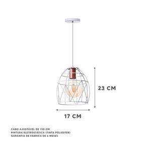 Lustre Pendente Interno Aramado Bala Branco Com Cobre Deixe sua casa muito mais moderna e sofisticada com os pendentes da Ideallume. O produto não enferruja nunca. Ele é ideal para ser utilizada em áreas internas em cima da sua mesa, balcao gourmet, balcao da sua churrasqueira. Sua pintura eletrostática é extremamente resistente a maresia, o que confere extrema proteção e durabilidade ao item. Com esse produto você dará um toque de beleza que valoriza sua casa.