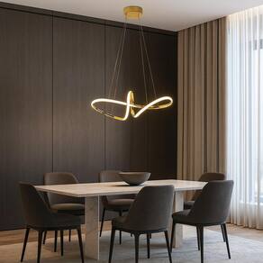 Lustre Pendente Led Dourado Moderno Design Escultural 50W 6 MESES Lustre Pendente LED Dourado Moderno Design Escultural Destaque a elegância do seu ambiente com este lustre pendente LED dourado, que combina design escultural e iluminação sofisticada. Seu formato curvado em linhas suaves traz um ar moderno e futurista, perfeito para compor salas de jantar, salas de estar, escritórios e recepções. Características: Design exclusivo: estrutura em curvas fluidas que cria um visual artístico e moderno. Acabamento luxuoso: dourado brilhante que agrega requinte e sofisticação. Iluminação LED integrada: econômica, durável e com luz uniforme. Cabo ajustável: permite adaptar a altura conforme o ambiente. Ambientes indicados: salas de jantar, salas de estar, halls de entrada, recepções e escritórios. Especificações Técnicas: Material: Alumínio e acrílico Cor: Dourado Tecnologia: LED embutido Temperatura de cor: Branco quente 3000K Cabo ajustável: até 1,50m Instalação: Teto Medida: 58cm de largura O produto é novo Sim, todos os produtos são novos. Caso o produto não supra minha necessidade posso devolver ou trocar O produto tem Sim, todos os produtos têm . Se ainda houver alguma dúvida estamos a disposição para responder de segunda-feira a sexta-feira das 08:00 às 17:30. Marca: Não Informado Ean: 7796055366194
