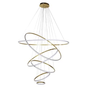 Características do Produto: Altura Total: 5 metros, ideal para espaços amplos. Largura Total: 120 cm, garantindo presença marcante no ambiente. Diâmetro dos Aros: 20cm, 40cm, 60cm, 80cm, 100cm, 120cm. Canopla base de teto : 32 cm, proporcionando uma fixação segura e discreta. Peso: 10 kg Temperatura de Cor: 3500K. Tensão: 100 - 240V Bivolt , compatível com qualquer sistema elétrico.