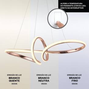 Lustre Pendente LED Rose Moderno Design Escultural 50W 3em1 6 MESES Lustre Pendente LED Rose Moderno Design Escultural Destaque a elegância do seu ambiente com este lustre pendente LED dourado, que combina design escultural e iluminação sofisticada. Seu formato curvado em linhas suaves traz um ar moderno e futurista, perfeito para compor salas de jantar, salas de estar, escritórios e recepções. Características: Design exclusivo: estrutura em curvas fluidas que cria um visual artístico e moderno. Acabamento luxuoso: dourado brilhante que agrega requinte e sofisticação. Iluminação LED integrada: econômica, durável e com luz uniforme. Cabo ajustável: permite adaptar a altura conforme o ambiente. Ambientes indicados: salas de jantar, salas de estar, halls de entrada, recepções e escritórios. Especificações Técnicas: Material: Alumínio e acrílico Cor: Rose Tecnologia: LED embutido Temperatura de cor: Branco quente 3000K Cabo ajustável: até 1,50m Instalação: Teto Medida: 58cm de largura O produto é novo Sim, todos os produtos são novos. Caso o produto não supra minha necessidade posso devolver ou trocar O produto tem Sim, todos os produtos têm . Se ainda houver alguma dúvida estamos a disposição para responder de segunda-feira a sexta-feira das 08:00 às 17:30. Marca: Não Informado Ean: 7796055366439