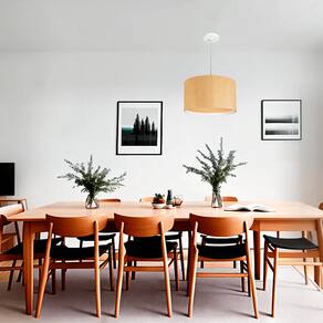 Transforme sua Sala de Jantar ou Quarto com este lustre pendente em madeira natural. Seu design elegante combina o Rustico da madeira com um detalhe sofisticado em acrílico cast, criando um jogo de luz e sombra deslumbrante. O cabo regulável de 70 cm permite adaptar a altura conforme sua necessidade, tornando-o perfeito para salas de jantar, salões ou escritórios.