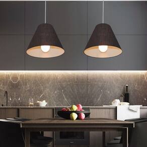 Lustre Pendente Md-4028 com Cúpula em Tecido Cone 25X30X12CM e Cabo Ajustável Preto Vivare Brasil Iluminação