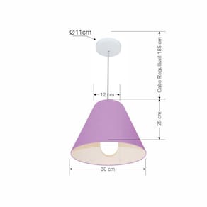 Lustre Pendente Md-4028 com Cúpula em Tecido Cone Pequeno Bivolt Lilás Vivare Brasil Iluminação