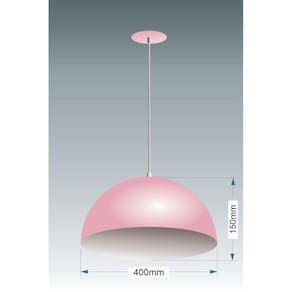 Lustre pendente meia lua orby 40cm rosa com branco - cabo de 2 metros rrjv Anuncio referente a 1 unidadeLustre pendente Modelo: meia lua Cor: rosa com interior branco Aproxima medidasdas: Altura: 15 cm Diâmetro: 40 cm Canópla de teto: 12 cm Soquete e-27 plástico Material: alumínio Marca r.R.J.V negócios O pendente acompanha 2 dois metrô de fio com altura ajustável. Marca: Rrjv