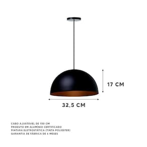 Especificações Técnicas: Marca: Ideallume Modelo: Meia Lua Produto: Lustre Cor: Preto Dimensões: 17 x 32,5 cm Canopla: redonda de 11cm de diâmetro Material: Alumínio Fio: Ajustável de 150cm Soquete: E-27 utilize a lâmpada que desejar Garantia: Garantia de 6 meses contra defeitos de fabricação Quantidade: 2 Unidades